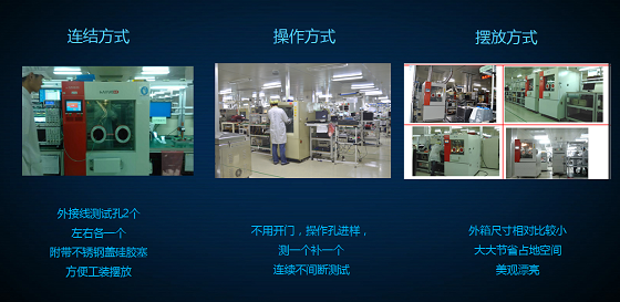 在線式高低溫試驗箱設(shè)備可長期在線低溫運(yùn)行玻璃使用大視窗,門上附帶兩個可供操作的操作孔(硅膠防靜電),可在觀察產(chǎn)品的同時進(jìn)行取拿產(chǎn)品。高效:以10G SFP+為例,一個班(10個小時)可產(chǎn)1800支模塊 -